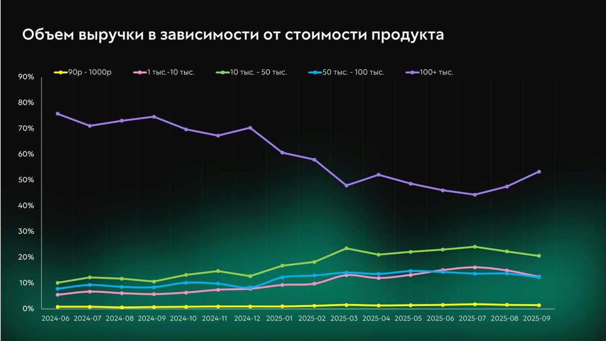 В этих условиях ключевым остается удержание существующей аудитории — доля повторных продаж на платформе колебалась в пределах 55–58% в течение квартала.